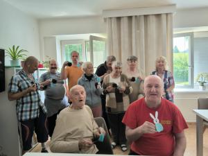 V našom zariadení sa stalo príjemnou tradíciou skupinové cvičenie, ktoré prebieha pravidelne dvakrát do týždňa. Zapájajú sa doň mobilní aj imobilní prijímatelia sociálnej služby, pričom každý cvičí podľa svojich možností a tempa.
