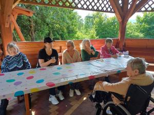 Naše prijímateľky sa opäť aktívne zapojili do tvorivých činností, pri ktorých si precvičovali jemnú motoriku – a zároveň si užili príjemné chvíle pri spoločnom rozhovore a tvorení.