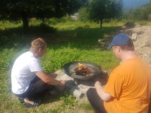 Na našej slnečnej terase sa v jedno dopoludnie rozozvučala známa melódia country piesní a vzduchom sa niesla neodolateľná vôňa ohňa a opekaných špekačiek. Zavládla u nás pravá „trampská“ nálada, ktorá všetkým pripomenula časy mladosti, stanovačiek a letných výletov.