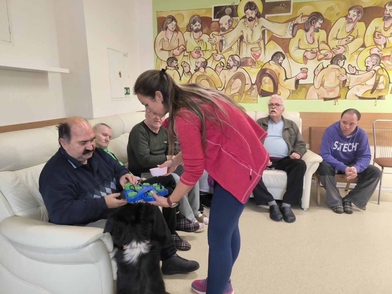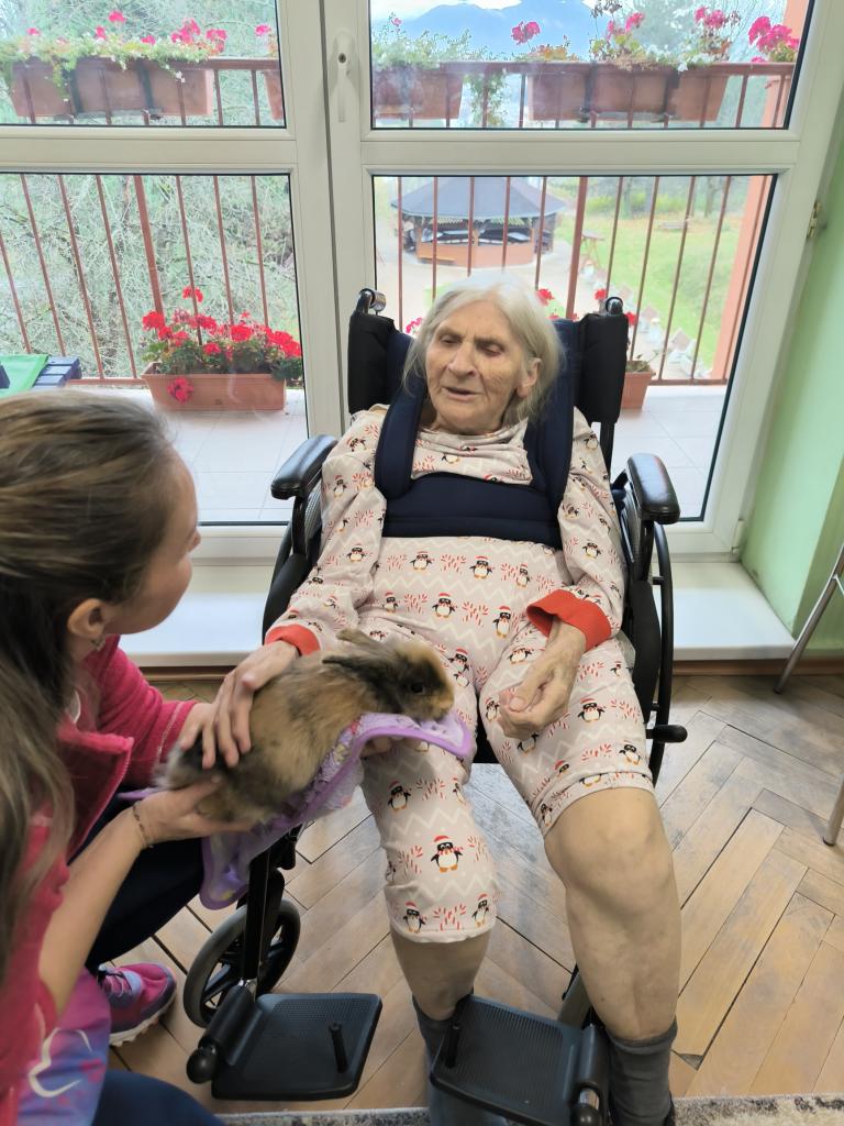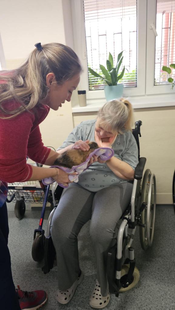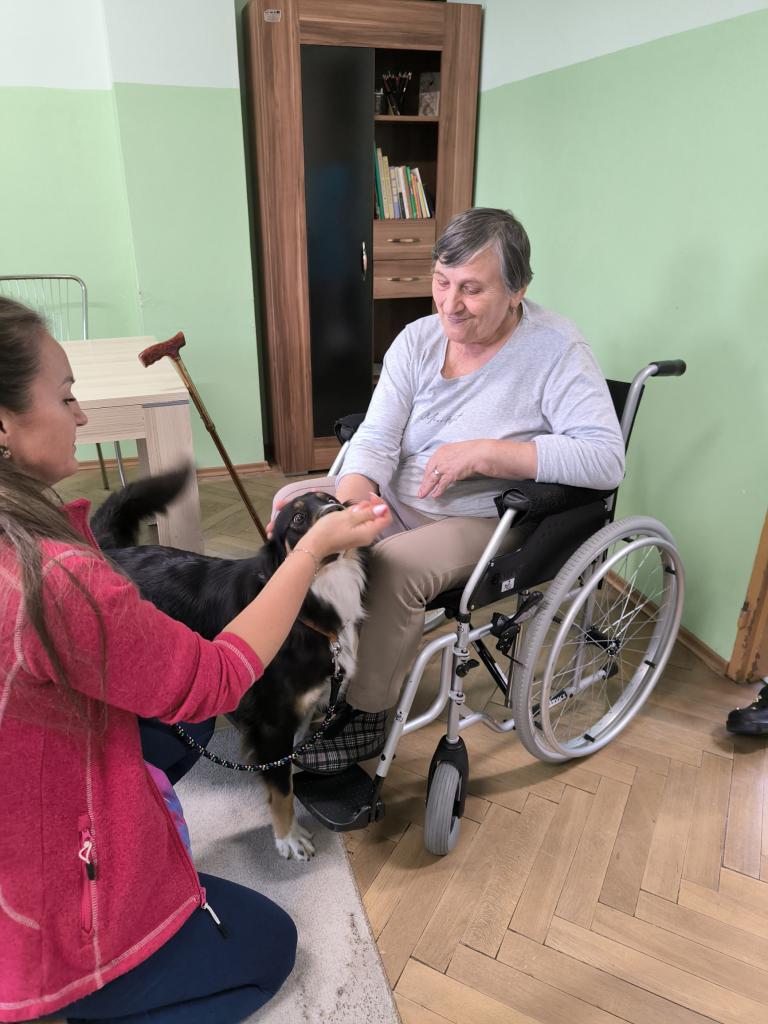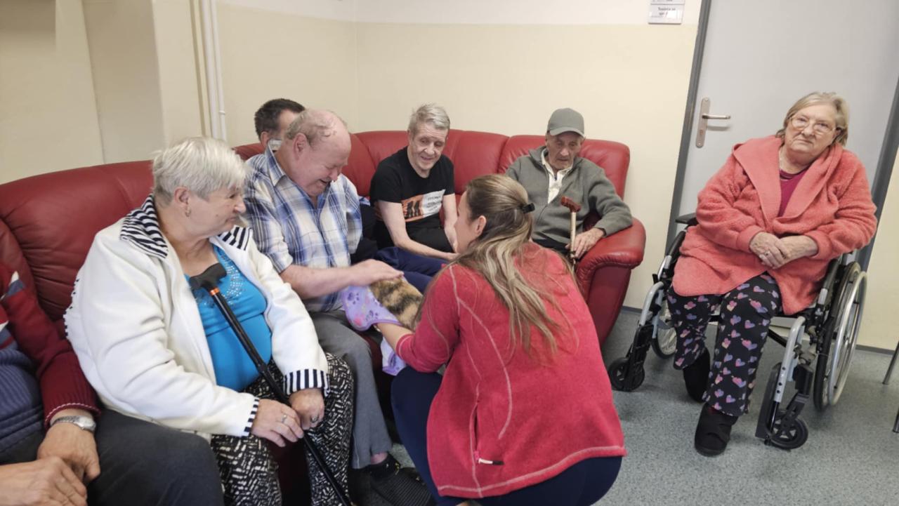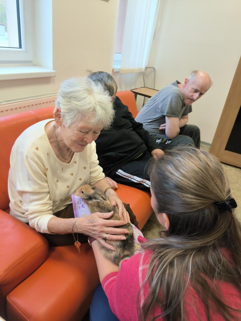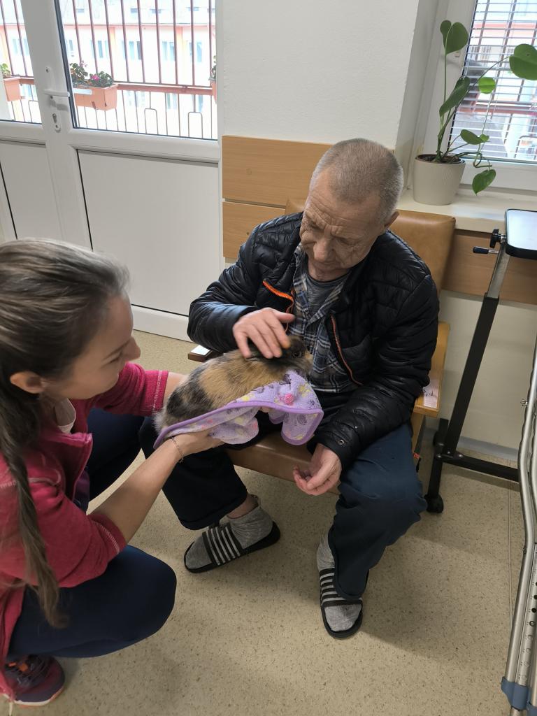 Prijímatelia sa so zvieratkami pomaznali, zahrali rôzne zaujímavé hry a psíkov si dokonca aj vyčesali. Počas aktivít si vyskúšali ich postreh a pozorovali ich správanie. Zajačik Mucko potešil svojou nežnou povahou a všetky tri zvieratká vytvorili pokojné, láskavé prostredie, ktoré naši seniori veľmi obľubujú.