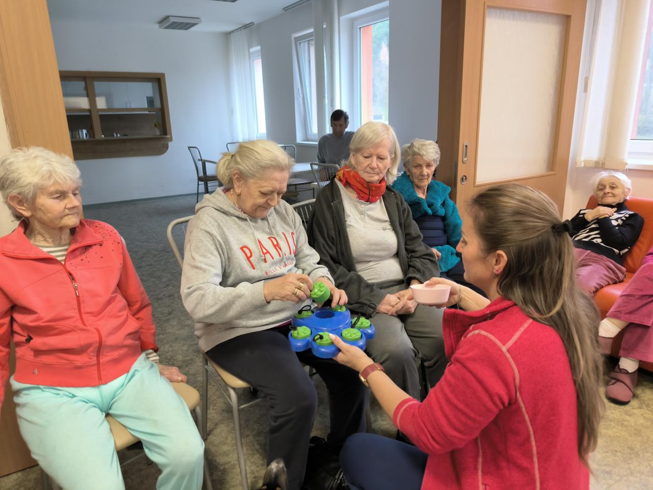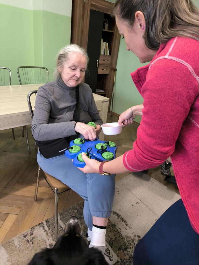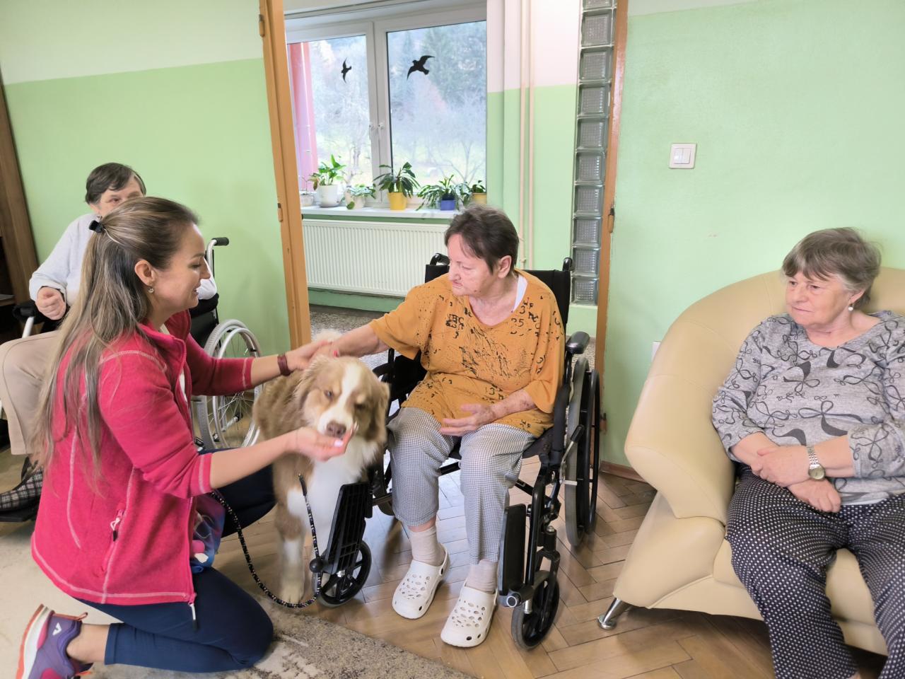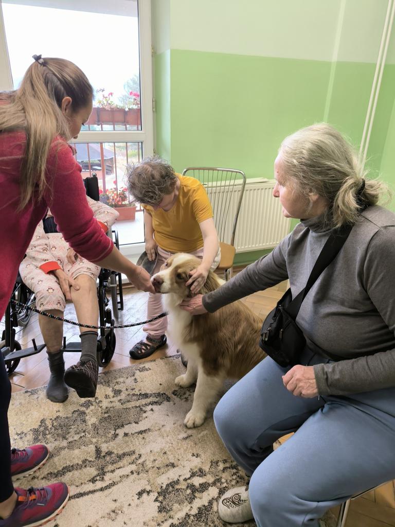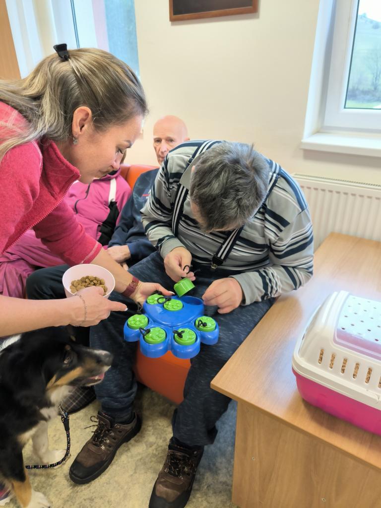 Prijímatelia sa so zvieratkami pomaznali, zahrali rôzne zaujímavé hry a psíkov si dokonca aj vyčesali. Počas aktivít si vyskúšali ich postreh a pozorovali ich správanie. Zajačik Mucko potešil svojou nežnou povahou a všetky tri zvieratká vytvorili pokojné, láskavé prostredie, ktoré naši seniori veľmi obľubujú.