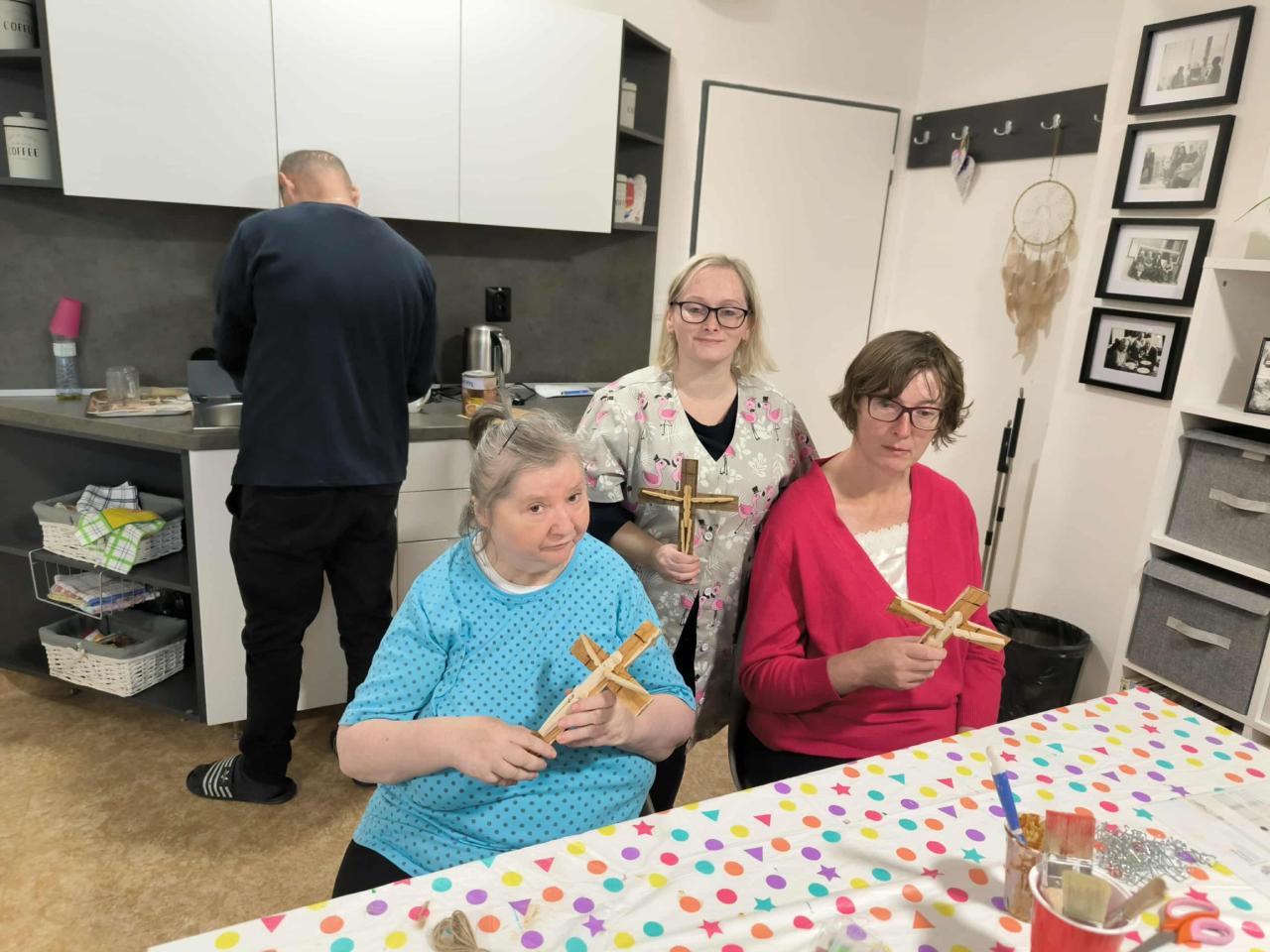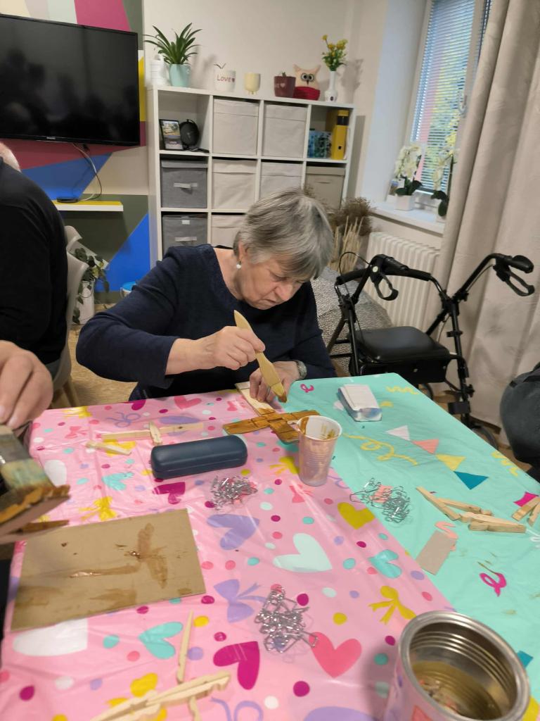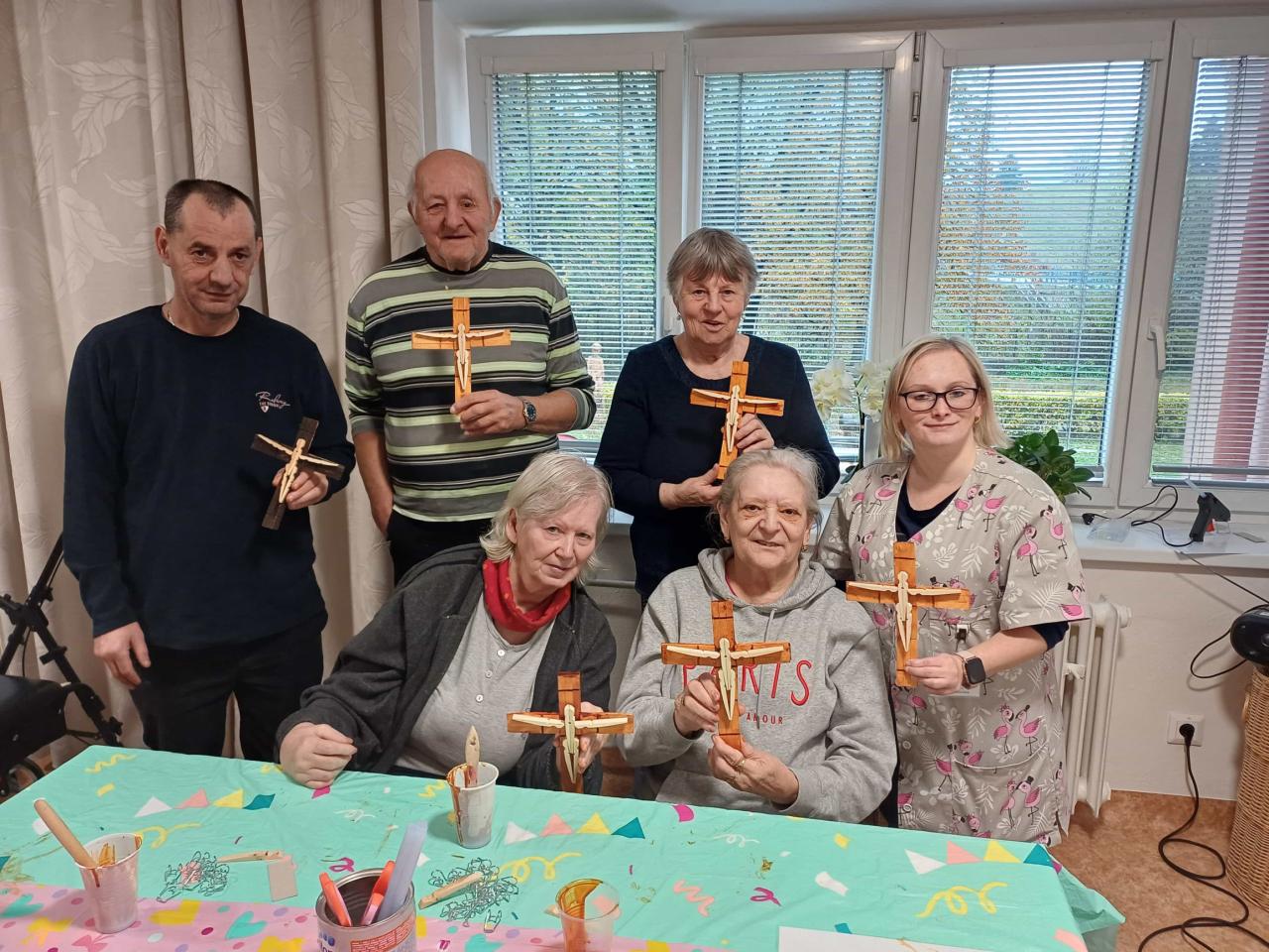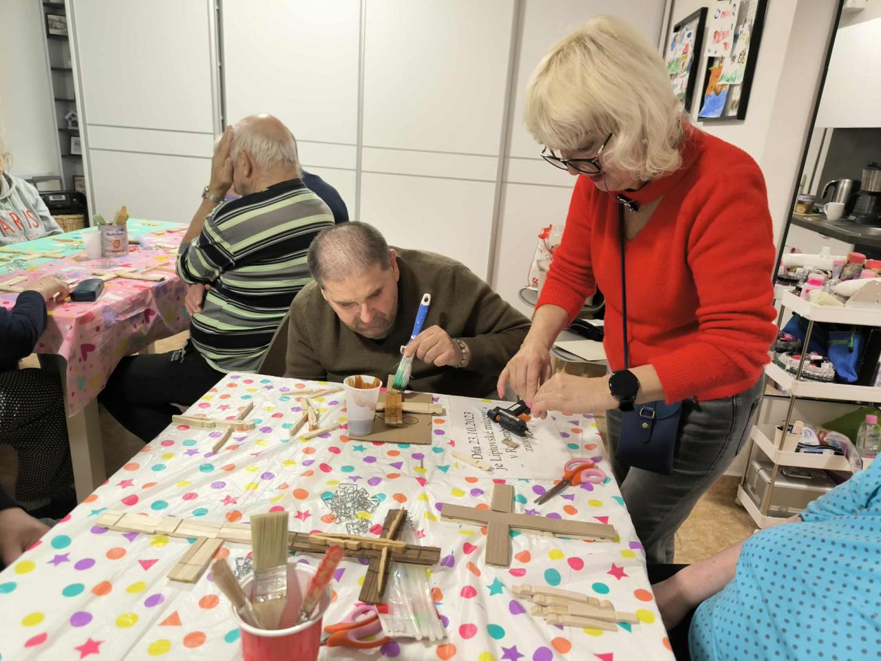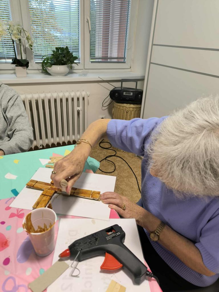 Po zaujímavom rozprávaní nasledovala tvorivá časť, počas ktorej sme sa pustili do práce s chuťou a radosťou. Z obyčajných drevených štipcov vznikli pod našimi rukami originálne, krásne drevené krížiky – každý jedinečný, tak ako spomienky, ktoré v sebe nosíme.